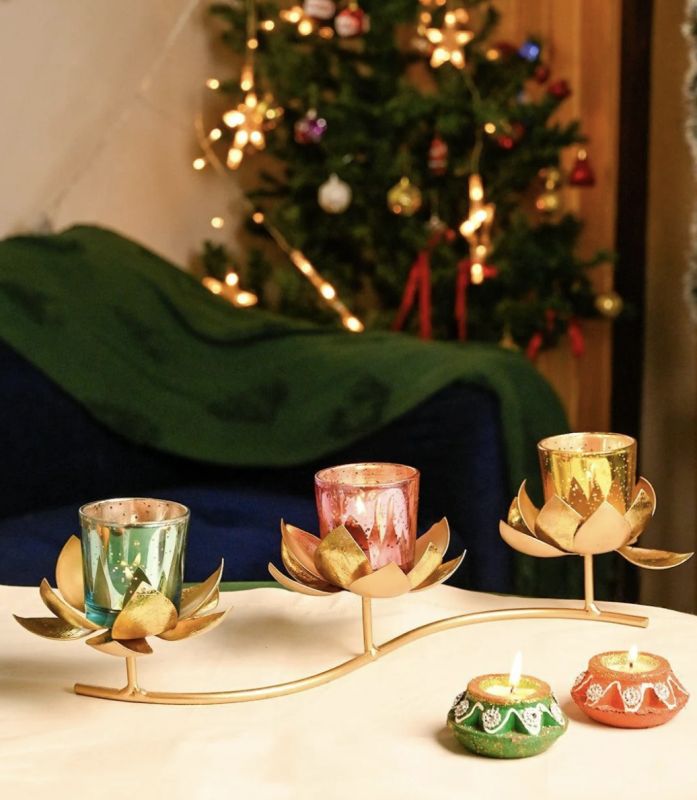 We are a leading Manufacturer, Exporter, and Supplier of exquisite 3 Holder Lotus Design Metal Tealight Candle Stand with Colored Glass Cups, originating from India. Available in various colors, this home decor piece features a beautiful Lotus Flower Pattern design. Crafted with a glossy gold plated finish, this tabletop candle holder stand adds elegance to any space. Easy to maintain by simply wiping with a dry cloth, this product is a perfect addition to enhance your home decor. Elevate your ambiance with this stunning piece that combines functionality and style.