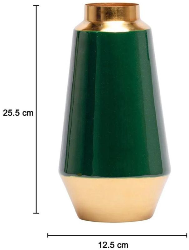 We offer a stunning Green Gold Plated Flower Vase, crafted in India with a polished finish and a plain pattern. This decorative floor vase is perfect for home decor, compatible with dried and artificial flowers. The elegant color combination of green and golden adds a touch of sophistication to any space. Simply wipe with a dry cloth for easy maintenance. Ideal for manufacturers, exporters, and suppliers looking to enhance their product range with a touch of Indian craftsmanship.