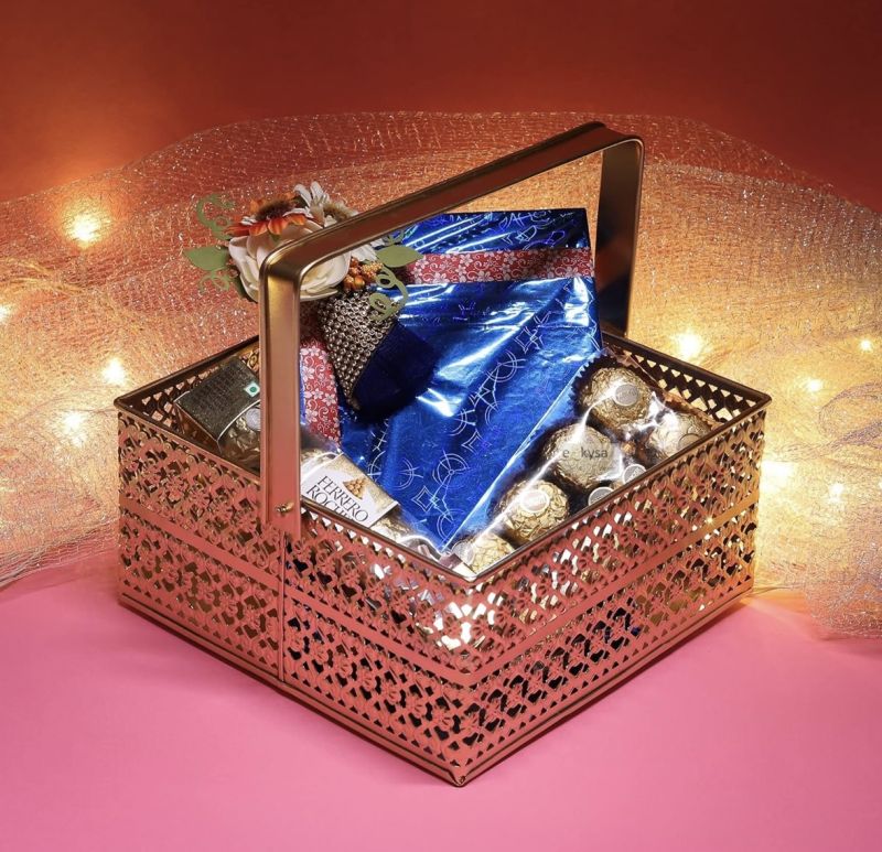We are a leading Manufacturer, Exporter, and Supplier of exquisite Golden Gift Hamper Baskets originating from India. Our beautifully crafted gift basket, measuring 12 X 8 X 4 inches, is perfect for gift-giving occasions. The golden color adds a touch of elegance, while the easy-to-carry feature makes it convenient. Each basket comes in decorative wrapping, making it a delightful present for your loved ones. Whether for birthdays, anniversaries, or special events, our Golden Gift Hamper Basket is a thoughtful and stylish choice that will surely impress.